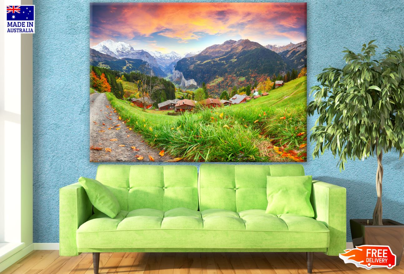 Houses & Mountain View Scenery Photograph Print 100% Australian Made