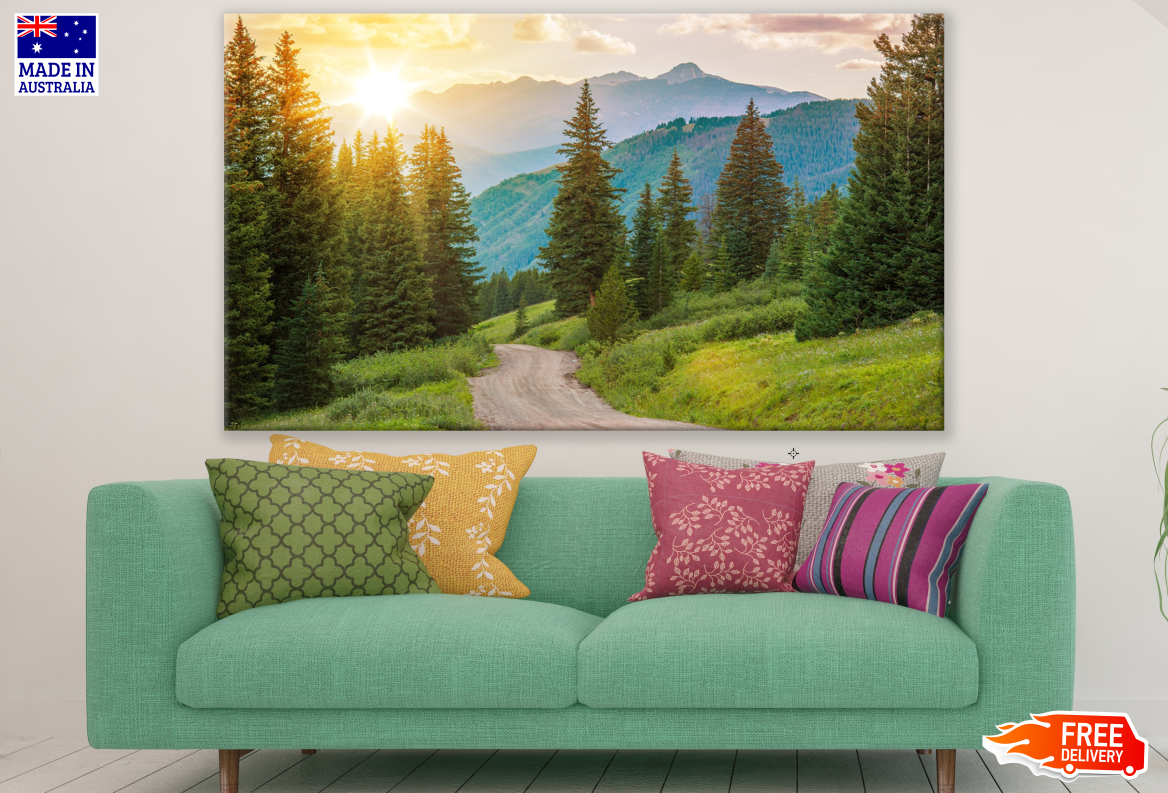 Road Between Trees Sunset Photograph Print 100% Australian Made