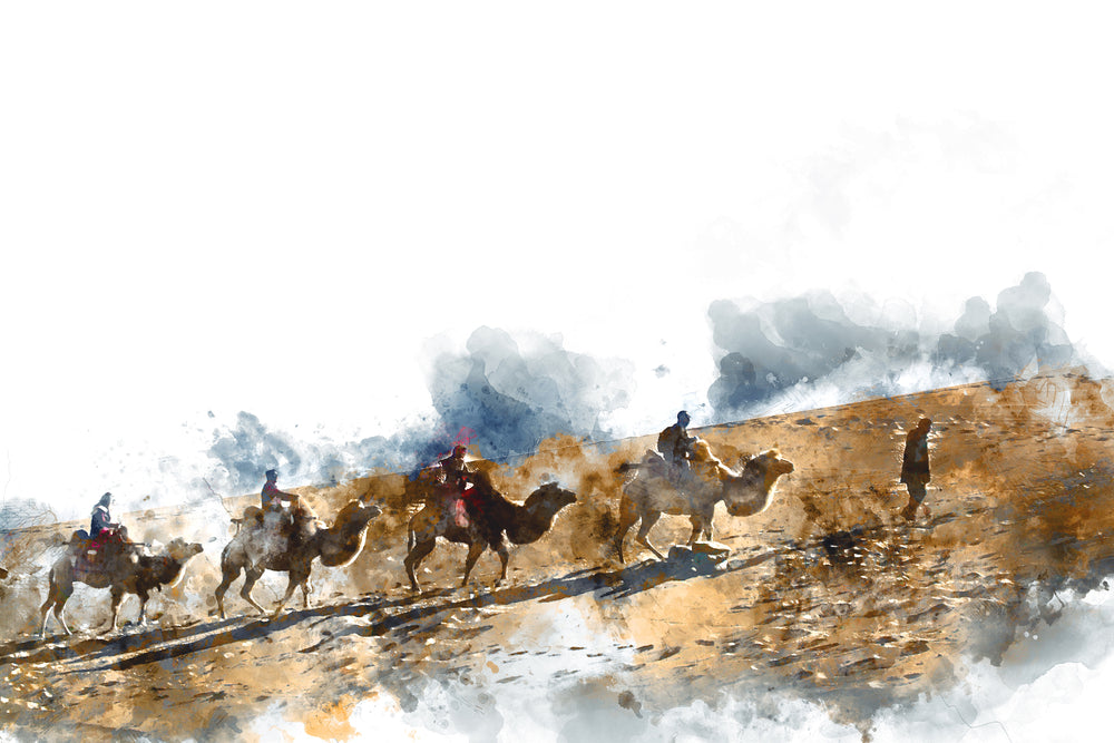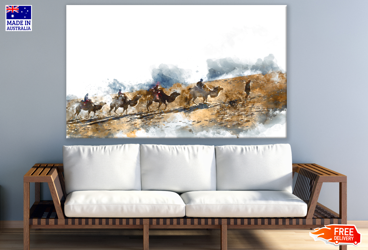 Camels & People Walking Across The Desert Print 100% Australian Made