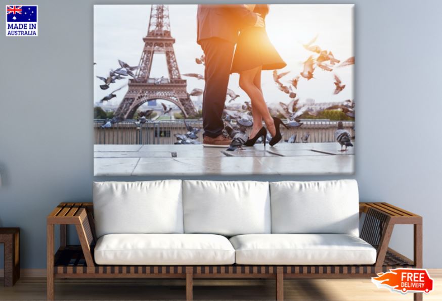 Couple Near Eiffel Tower Sunset Photograph Print 100% Australian Made