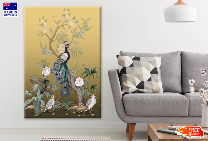 Peacock Bird & Flower Tree Painting Print 100% Australian Made