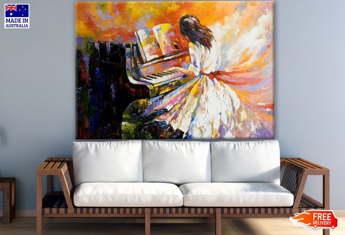 Girl Playing Piano Watercolor Painting Print 100% Australian Made