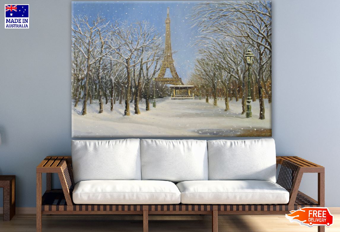 Snow Scene in the Capital of France with Eiffel Tower Print 100% Australian Made