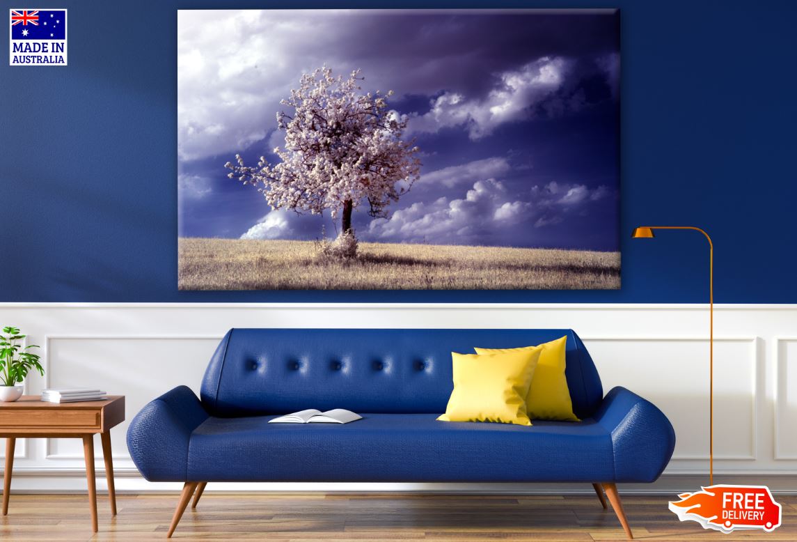 Tree on Meadow with Stunning Cloudy Sky Photograph Print 100% Australian Made