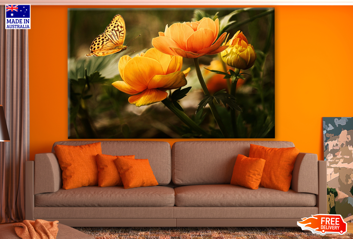 Butterfly Flying Near Flowers Photograph Print 100% Australian Made