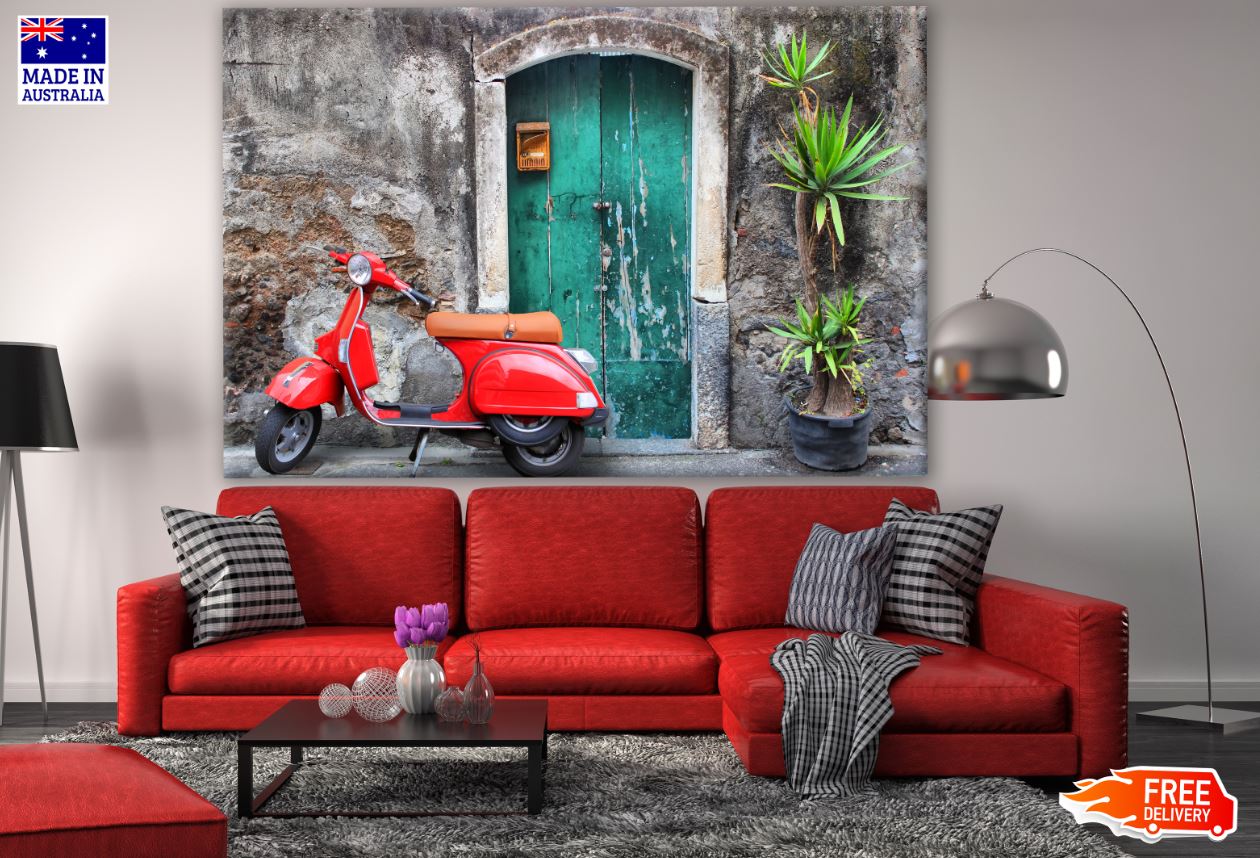 City House & Red Motor Bike Photograph Print 100% Australian Made