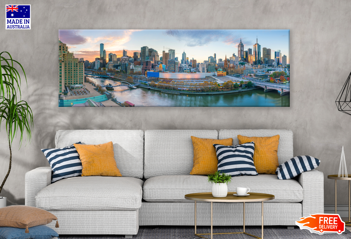 Panoramic Canvas City Skyline View High Quality 100% Australian made wall Canvas Print ready to hang