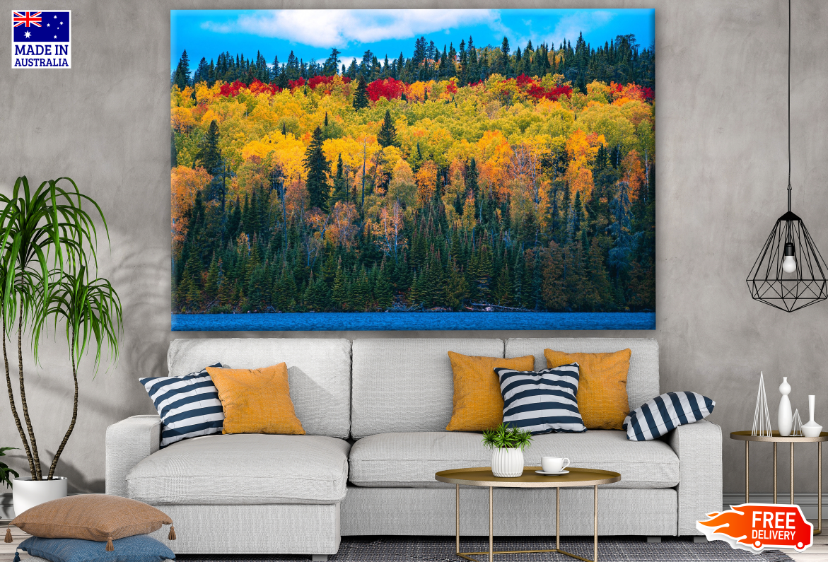 Lake with Autumn Tree Forest Photograph Print 100% Australian Made