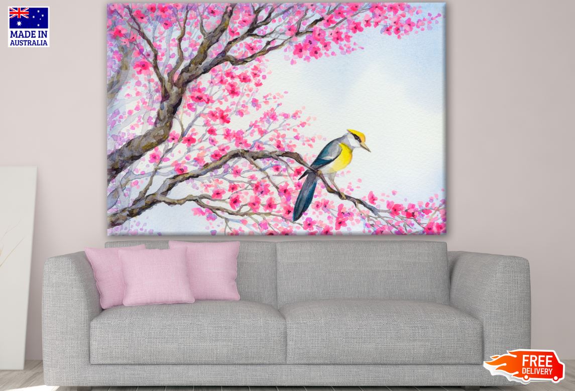 Rose Flower Trees & Bird Watercolor Painting Print 100% Australian Made
