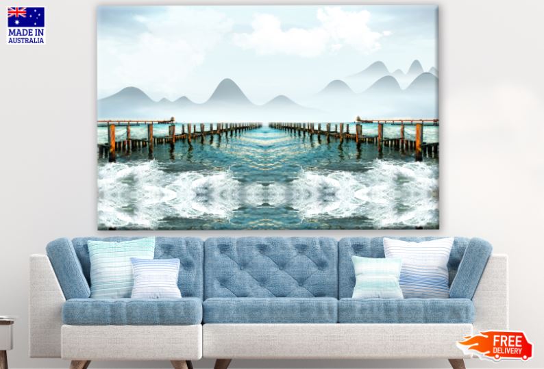 Wooden Piers Over Sea Scenery Photograph Print 100% Australian Made