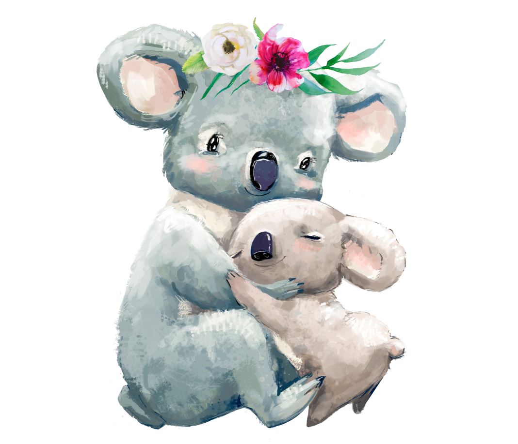 Square Canvas Koala Bear & Baby Watercolor Painting High Quality Print 100% Australian Made