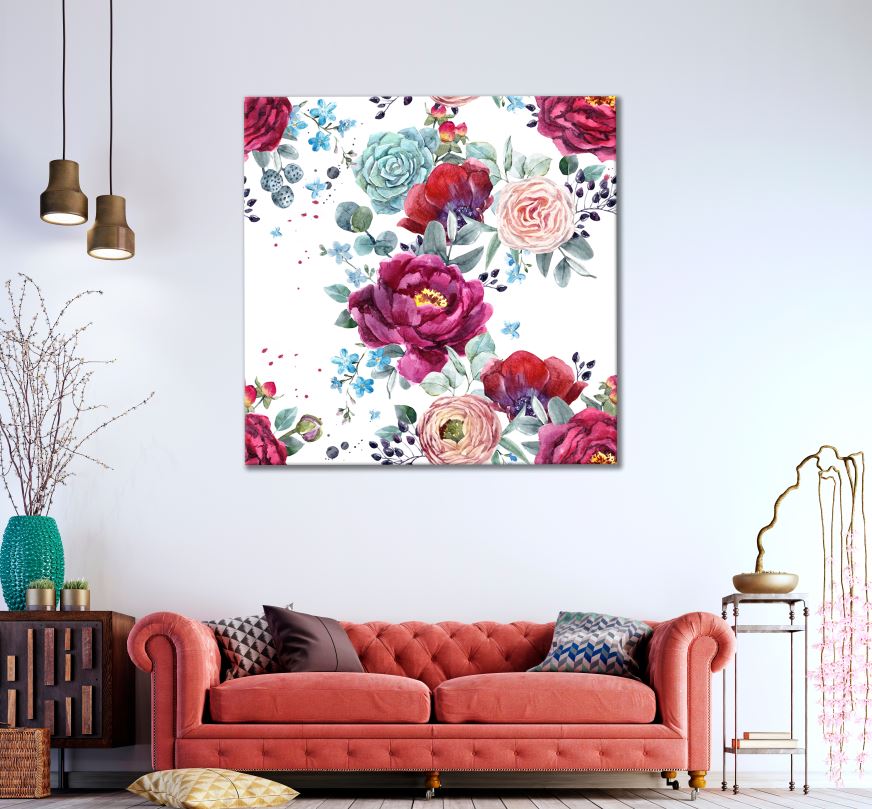 Square Canvas Floral Pattern Design High Quality Print 100% Australian Made