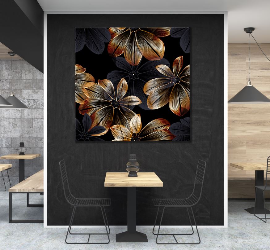 Square Canvas Gold & Black Abstract Floral Design High Quality Print 100% Australian Made