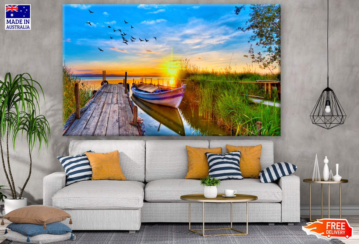 Colorful Sunset Over the Lake & Boat Photograph Print 100% Australian Made