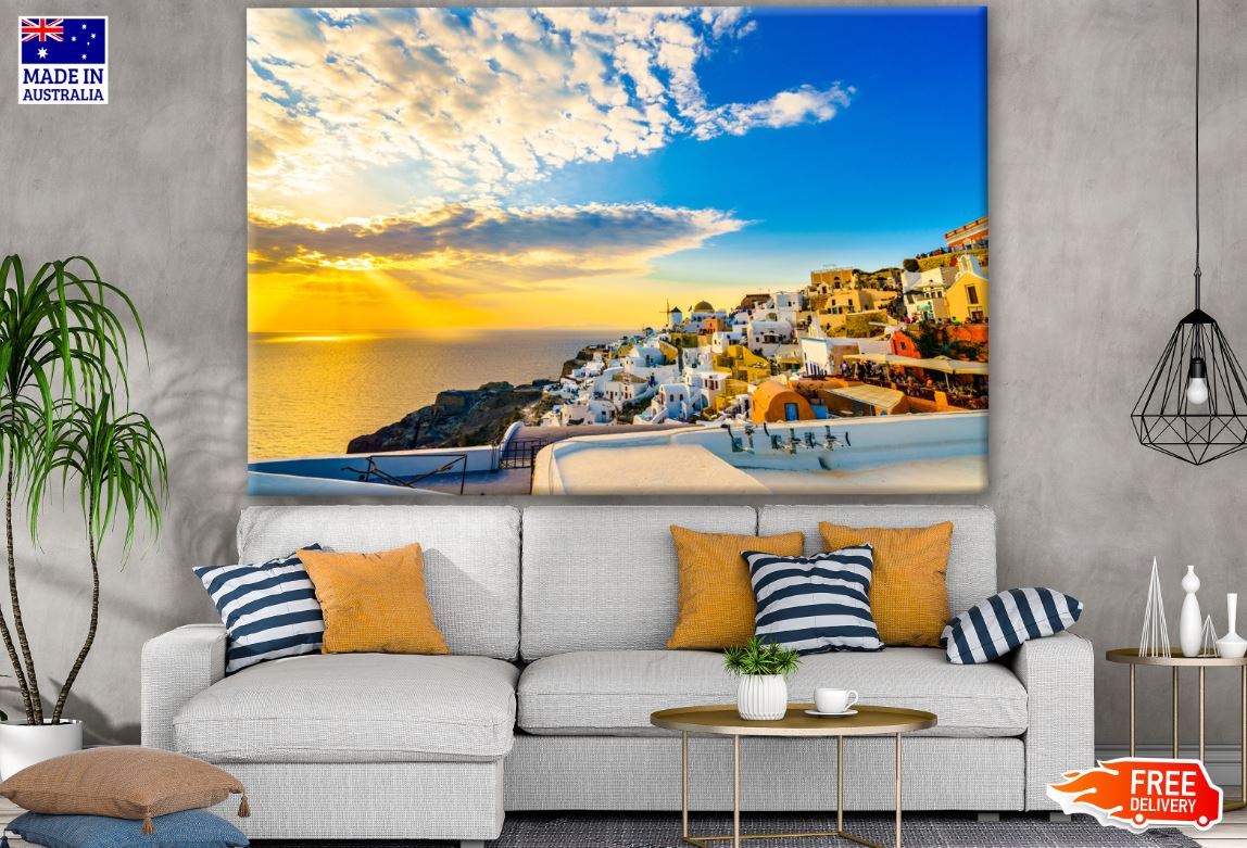 Old Town of Oia Village at Sunset, Santorini Island in Greece Photograph Print 100% Australian Made