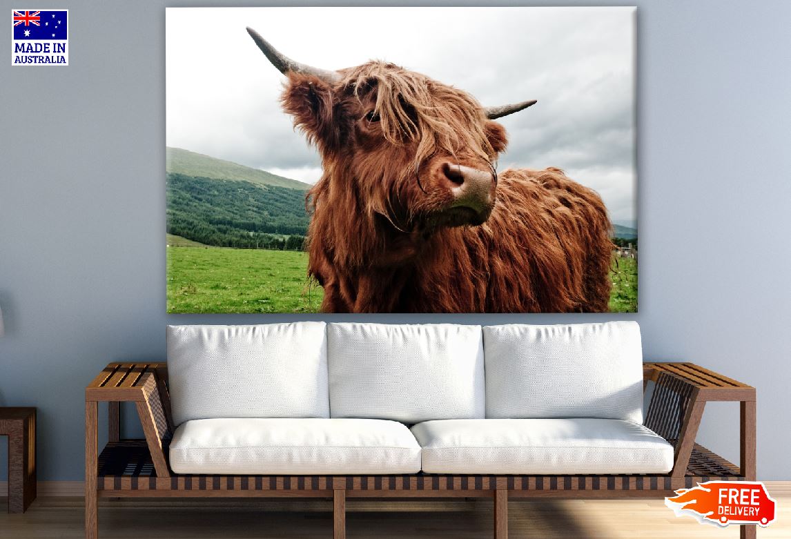 Highland Cow Near Mountain Photograph Print 100% Australian Made