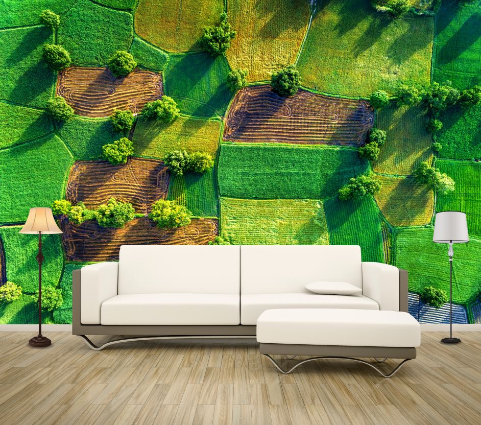 Wallpaper Murals Peel and Stick Removable Aerial View of Rice Fields in Mekong Delta in Vietnam High Quality