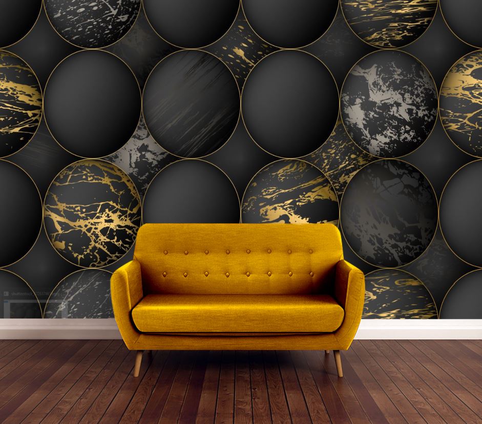 Wallpaper Murals Peel and Stick Removable Black & Gold Circle Abstract Design High Quality