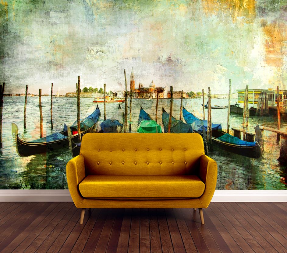Wallpaper Murals Peel and Stick Removable Boats on River Watercolor Painting High Quality