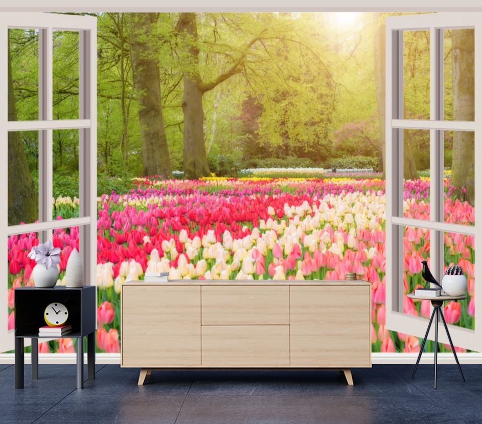 Wallpaper Murals Peel and Stick Removable Stunning Floral Field View from Window High Quality