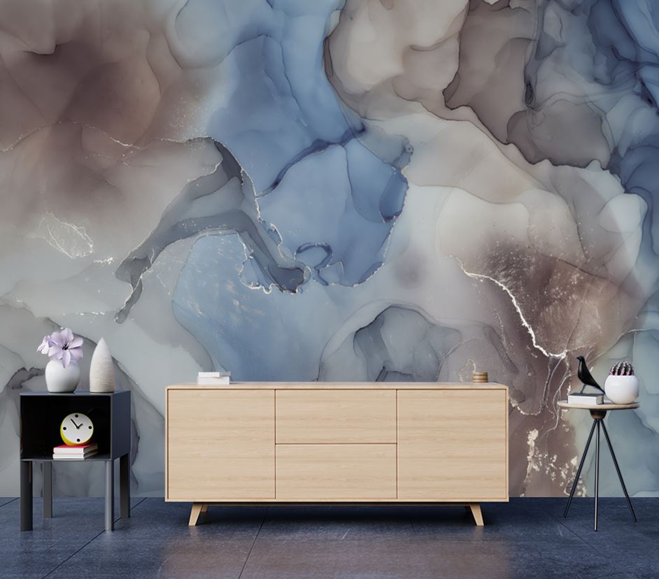 Wallpaper Murals Peel and Stick Removable Brown Blue & Black Watercolor Abstract Design High Quality