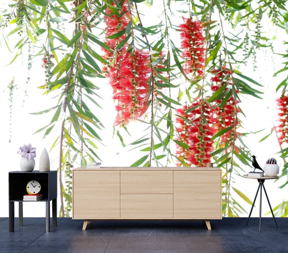 Wallpaper Murals Peel and Stick Removable Red Bottle Brush Flower Tree High Quality