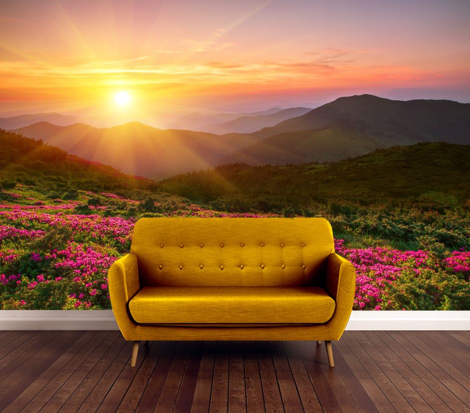 Wallpaper Murals Peel and Stick Removable Floral Field at Sunset Photograph High Quality