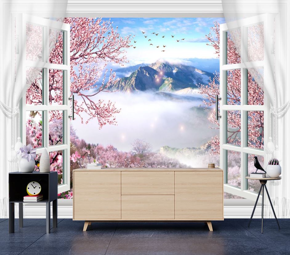 Wallpaper Murals Peel and Stick Removable Flower Trees View form Window High Quality
