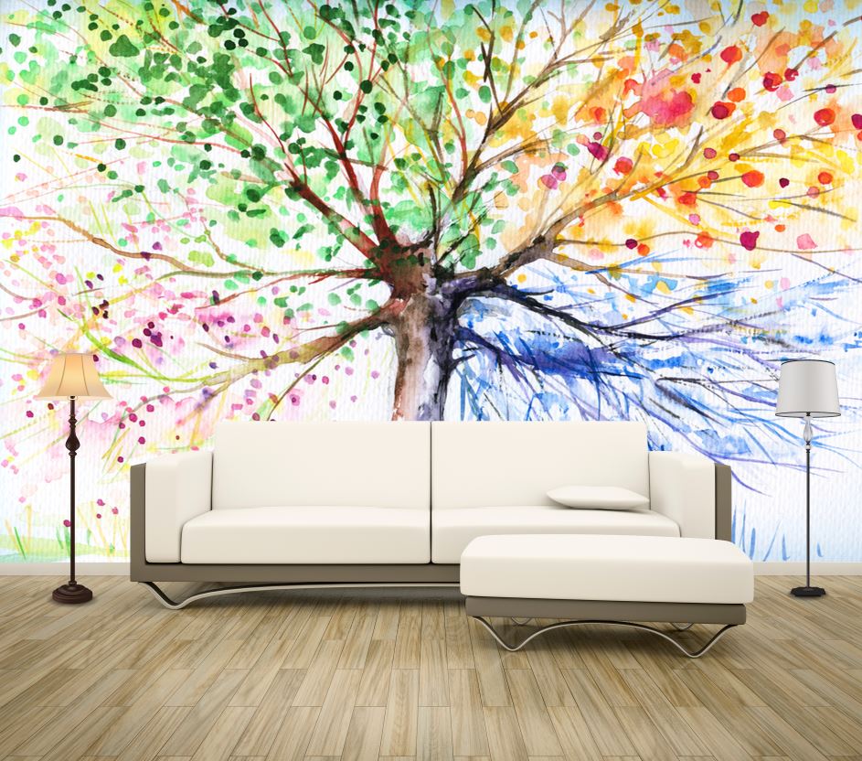 Wallpaper Murals Peel and Stick Removable Colorful Tree Painting High Quality