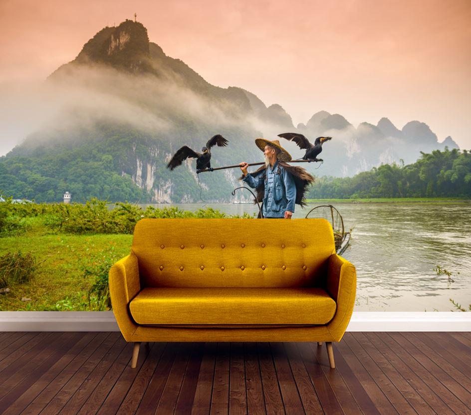 Wallpaper Murals Peel and Stick Removable A Traditional Fisherman on the Li River Yangshuo, China High Quality
