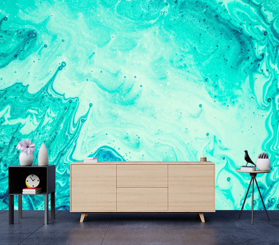 Wallpaper Murals Peel and Stick Removable Green & Blue Granite Abstract Design High Quality