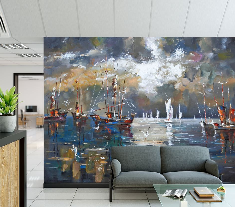 Wallpaper Murals Peel and Stick Removable Watercolor Boats on Sea Painting High Quality
