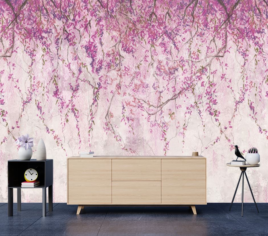 Wallpaper Murals Peel and Stick Removable Pink Floral Design High Quality