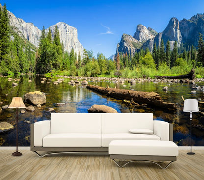 Wallpaper Murals Peel and Stick Removable Water stream & Mountain View High Quality