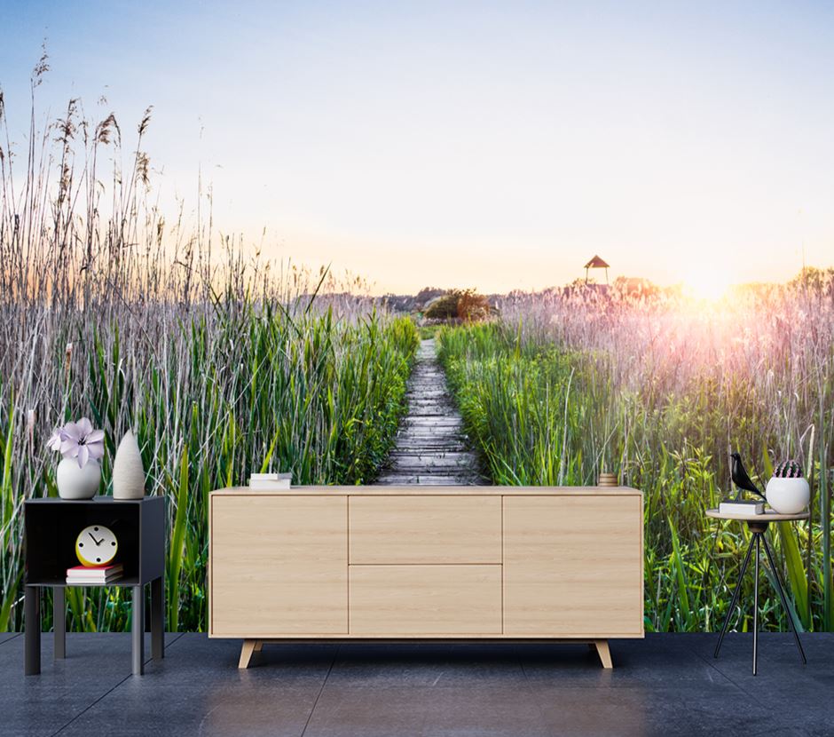 Wallpaper Murals Peel and Stick Removable Wooden Path Between Grass High Quality