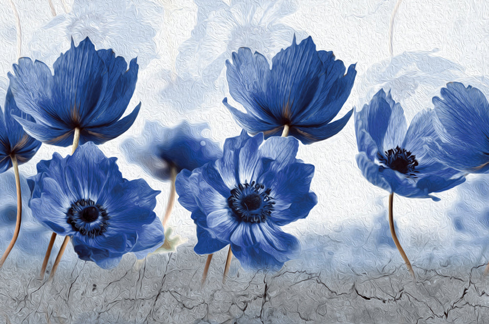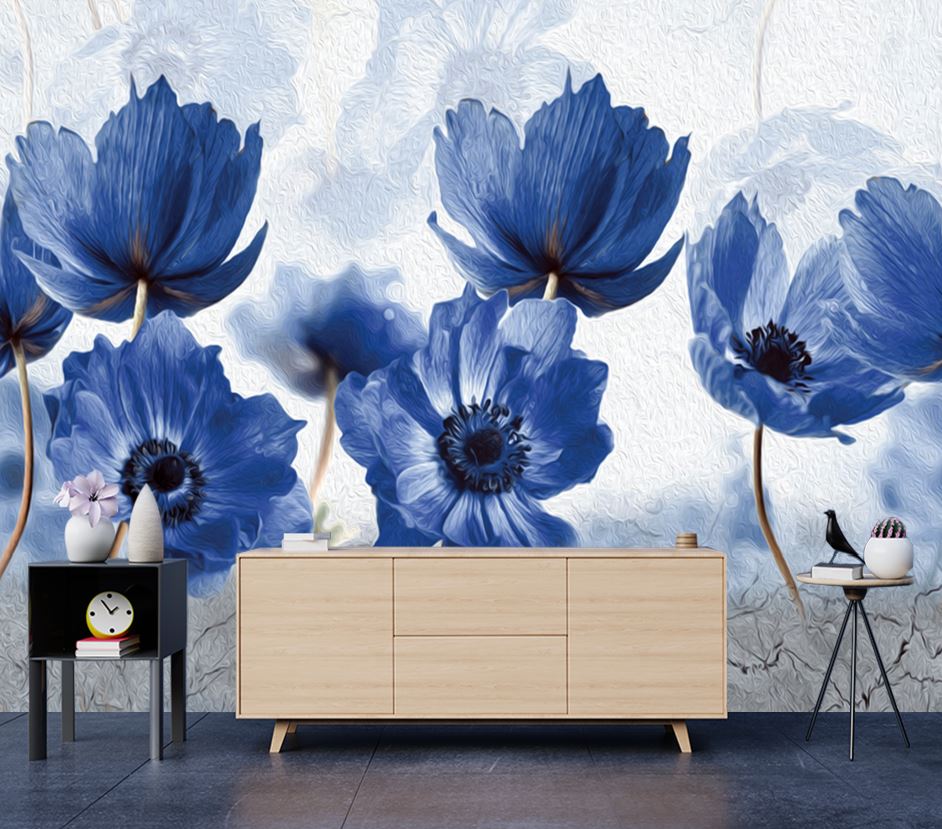 Wallpaper Murals Peel and Stick Removable Blue Floral Oil Painting Design High Quality