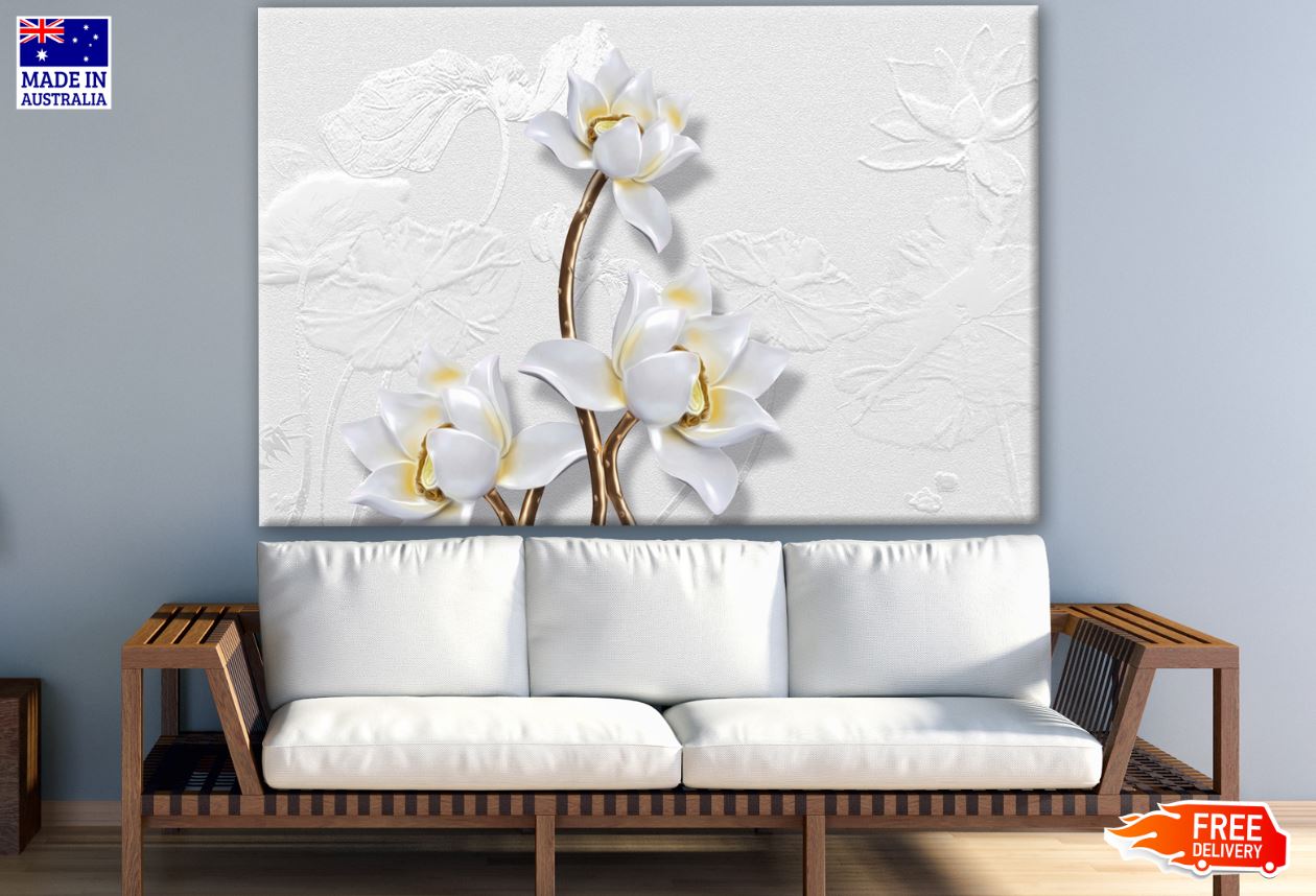 3D Gold & White Floral Design Print 100% Australian Made