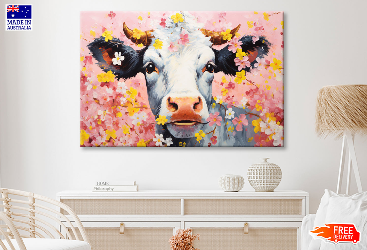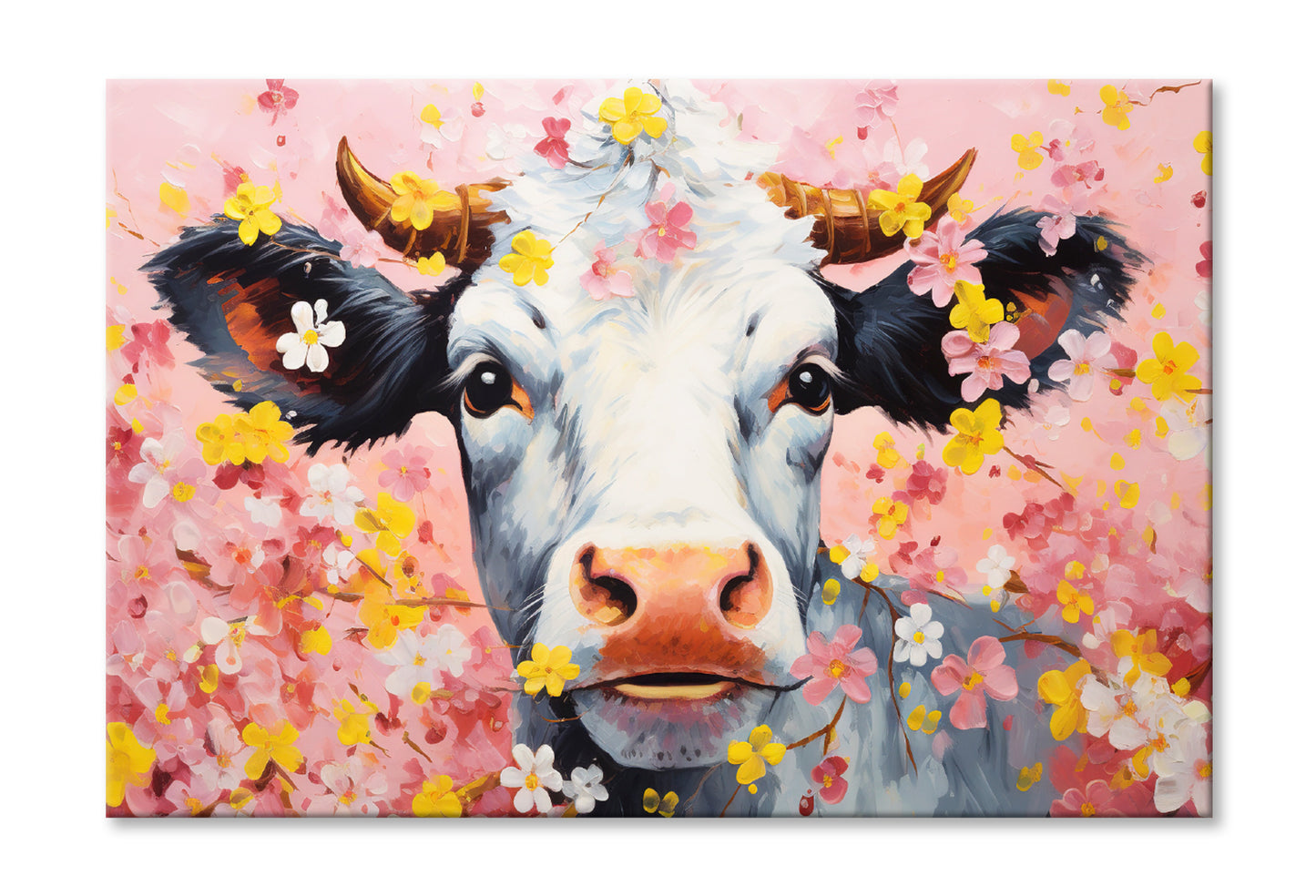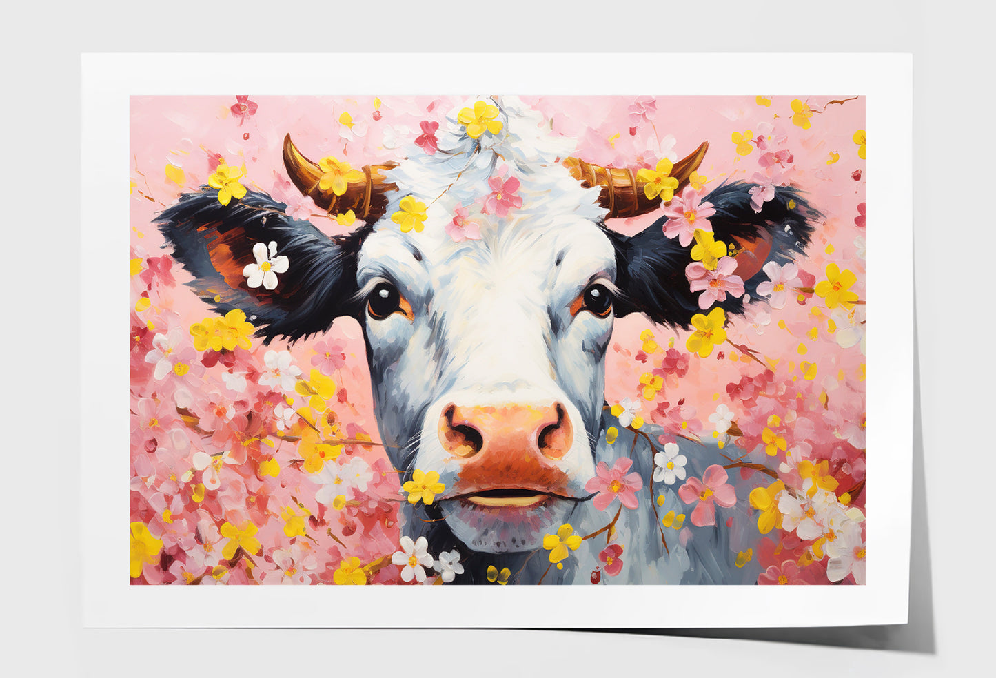 Cow Face in Blossom Flowers Oil Painting Wall Art Limited Edition High Quality Print