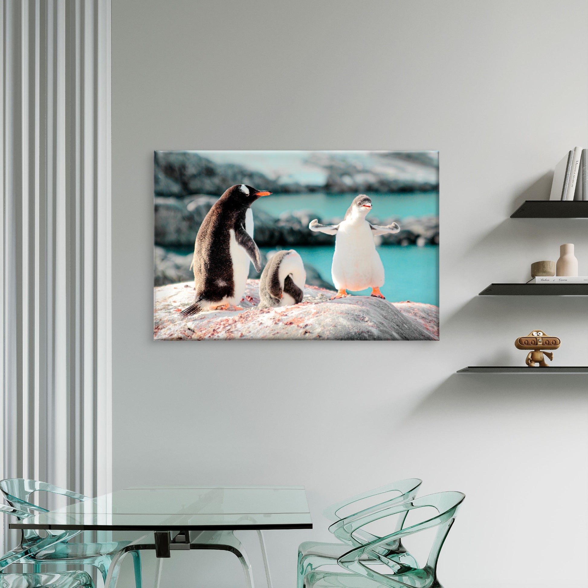 Cute Gentoo Baby Penguins on Rocks Black and White Birds Wall Art Decor 100% Australian Made