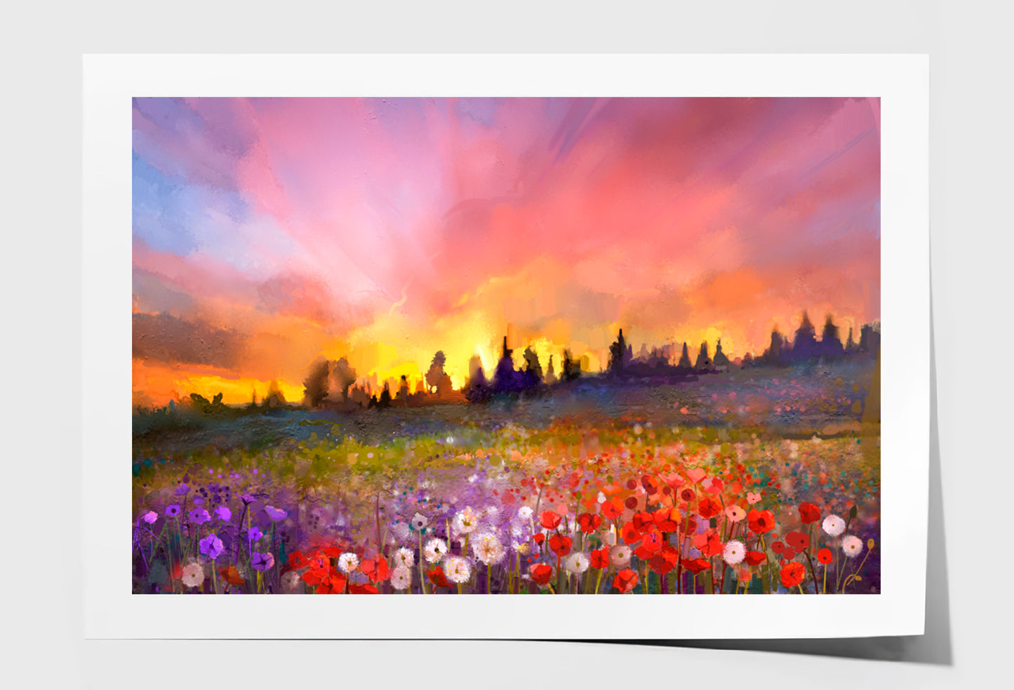 Daisy Flowers In Fields, Sunset Meadow Oil Painting Wall Art Limited Edition High Quality Print