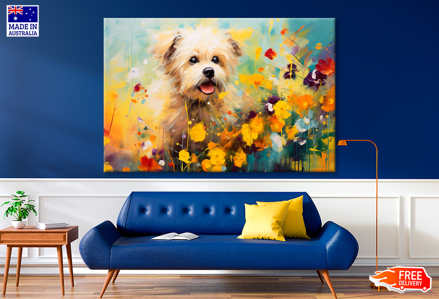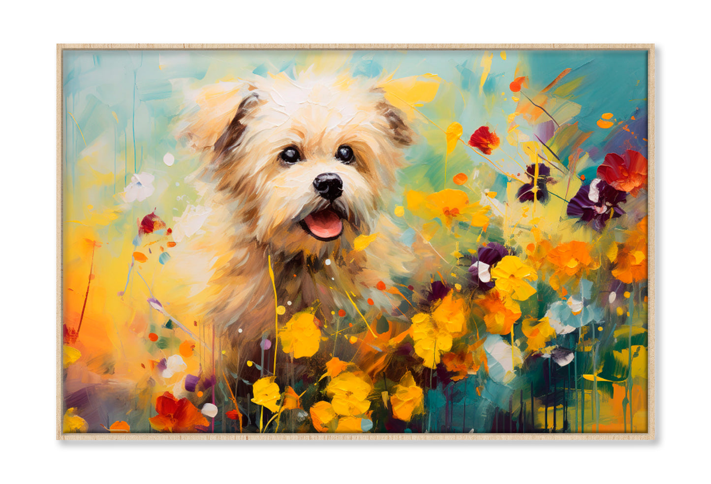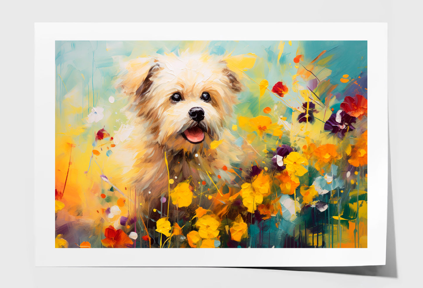 Dog In Flower Blossom Oil Painting Wall Art Limited Edition High Quality Print