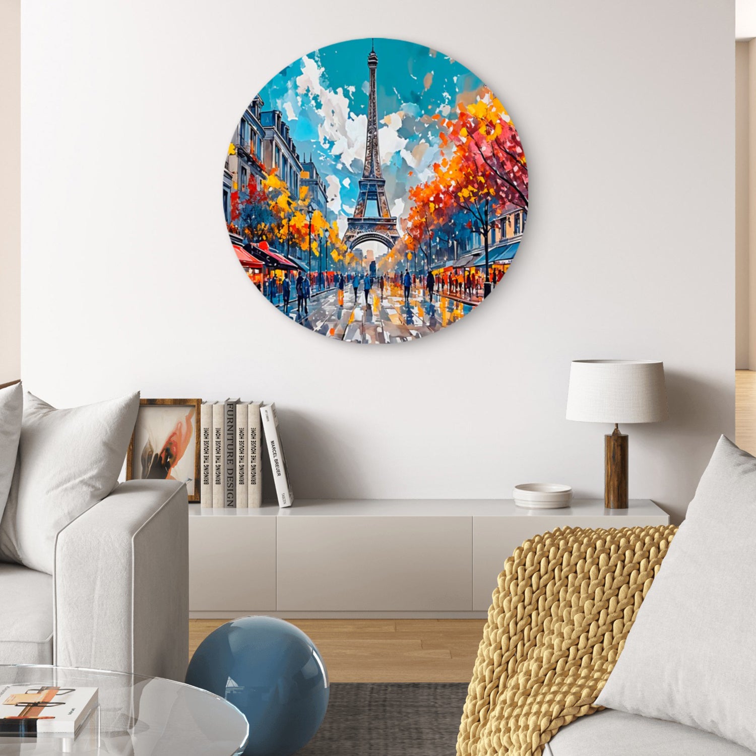Eiffel Paris Street Painting Acrylic Glass Rounded Print Tempered Glass Wall Art 100% Made in Australia Ready to Hang