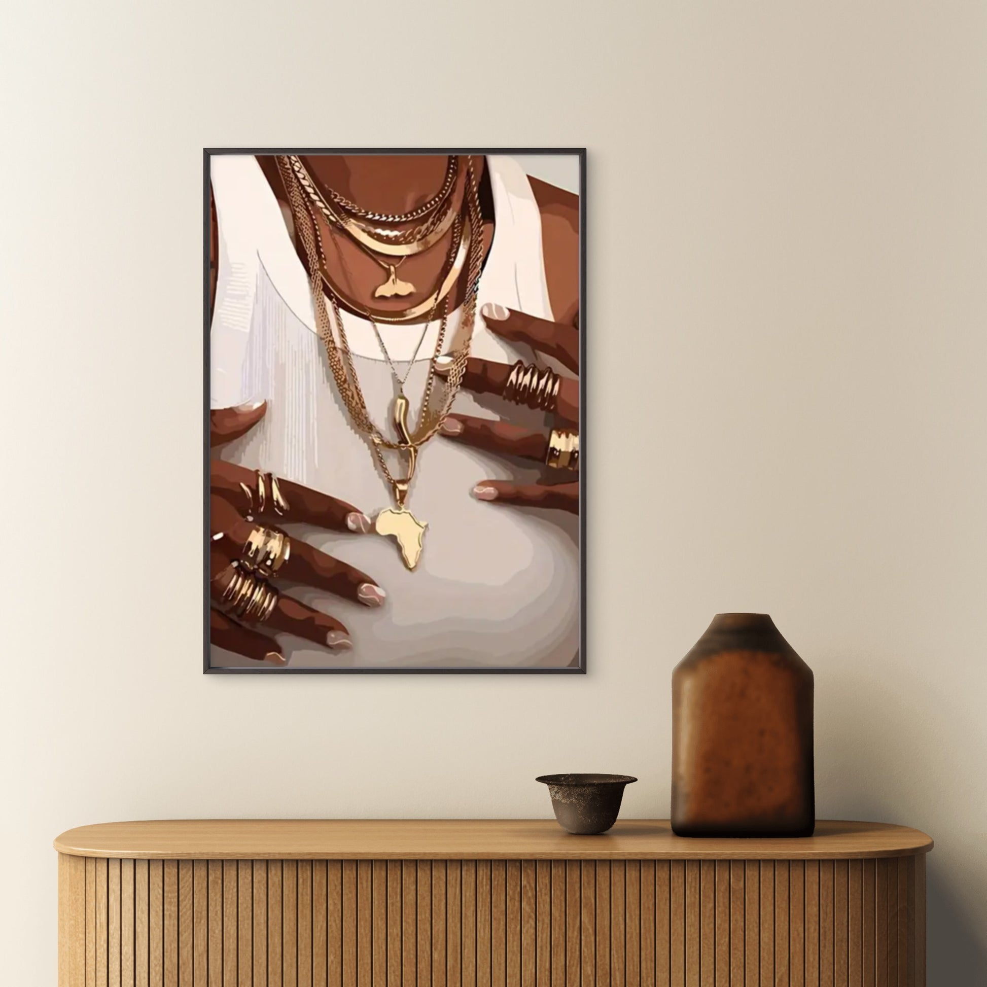 Figure in White Attired with Golden Necklaces Fashion Home Decor Premium Quality Poster Print Choose Your Sizes