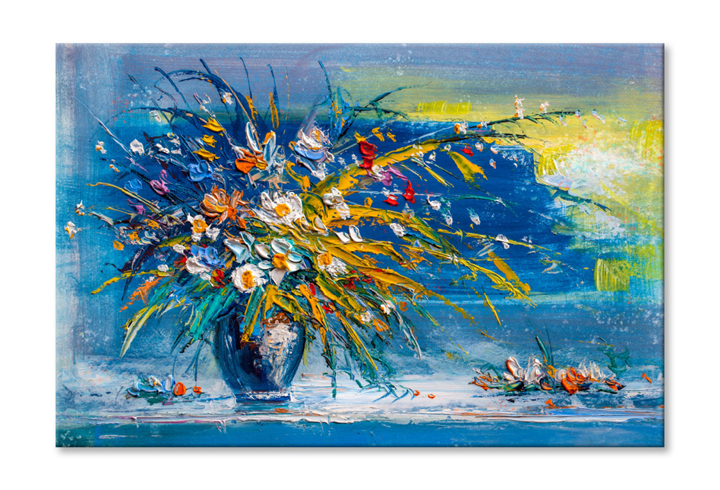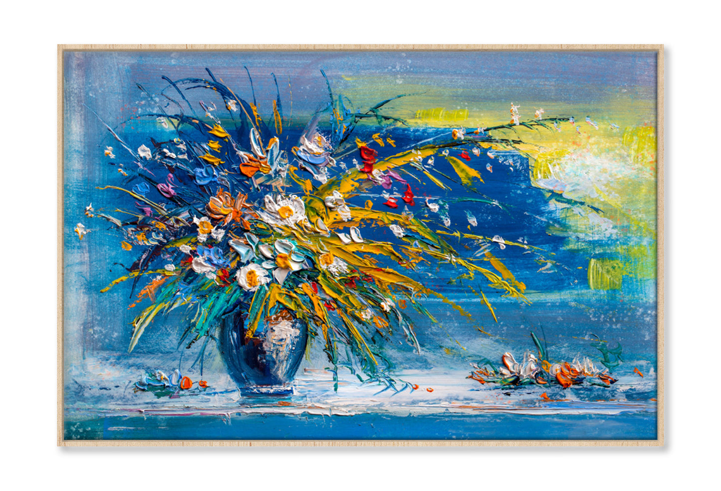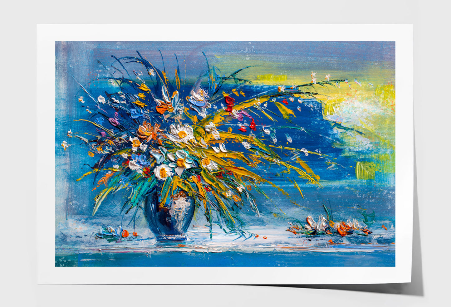 Flowers with Leaves Blue Vase Oil Painting Wall Art Limited Edition High Quality Print