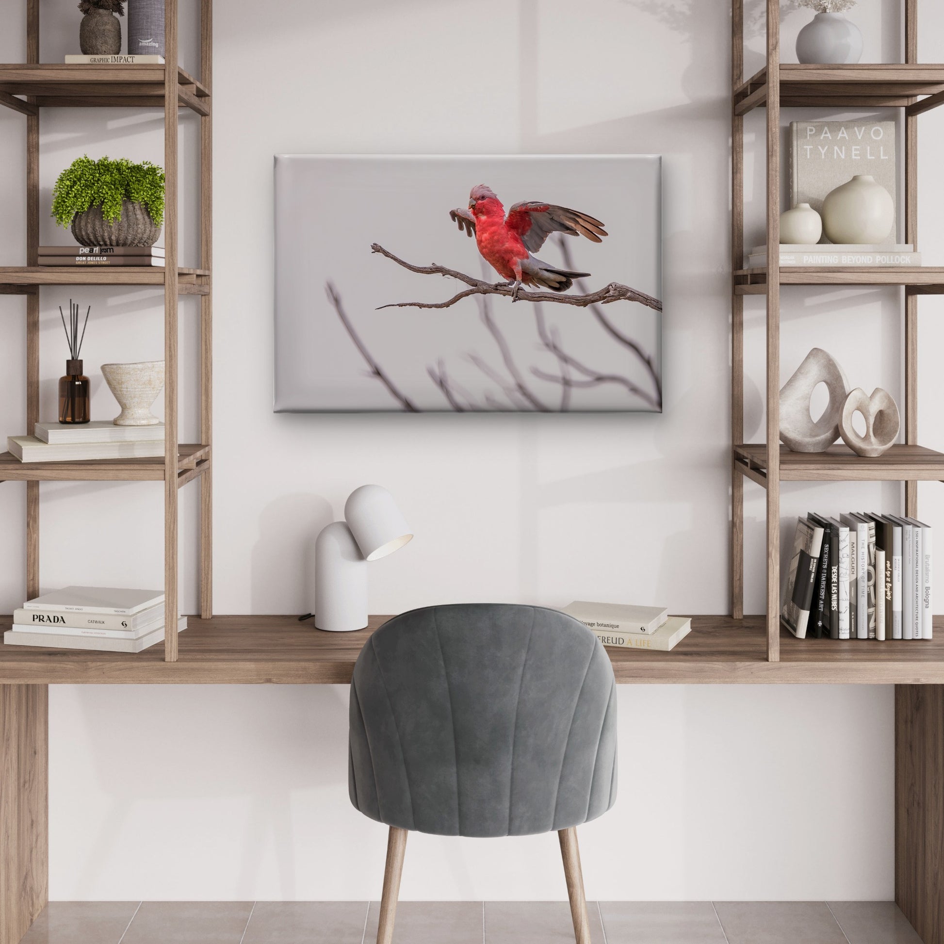 A stunning Galah with wings spread wide, showcasing vibrant pink and grey feathers. This elegant wall art decor captures the beauty of one of Australia’s most iconic birds, 100% Australian made and ready to hang
