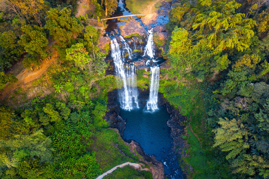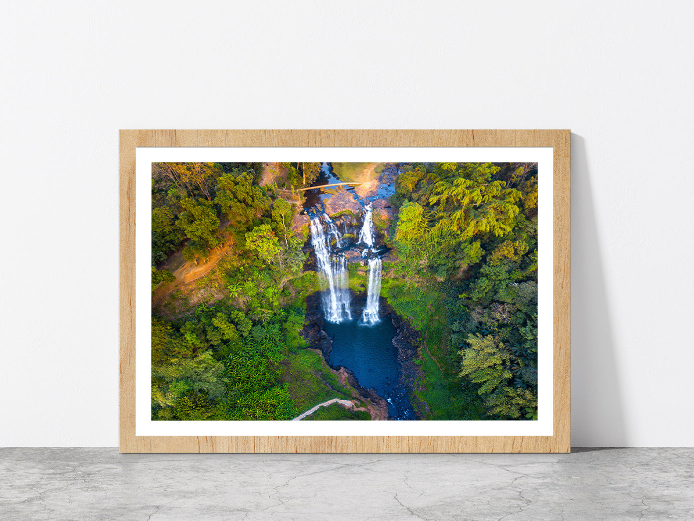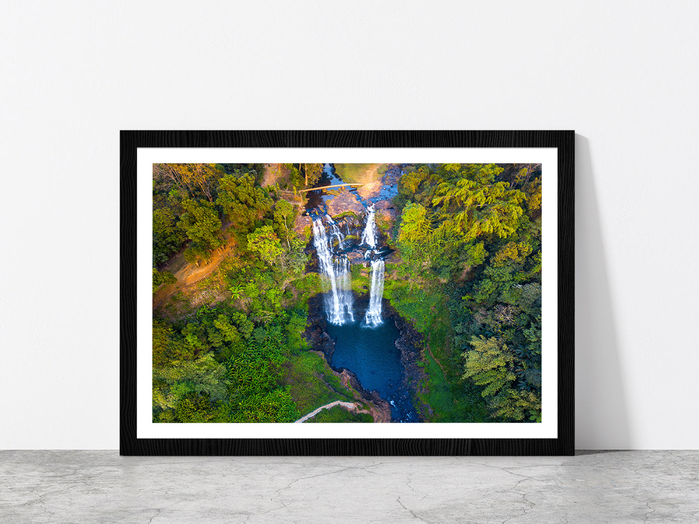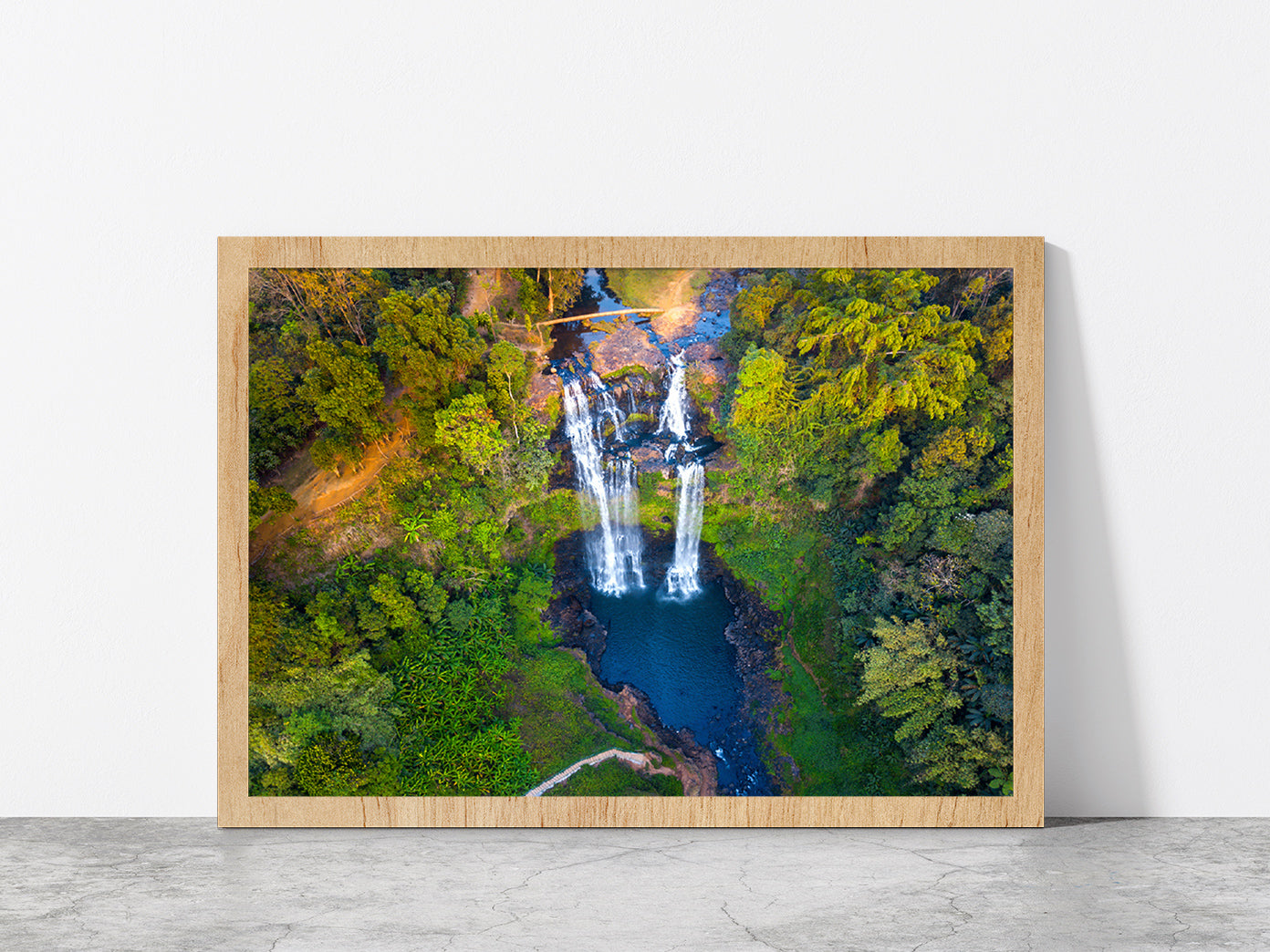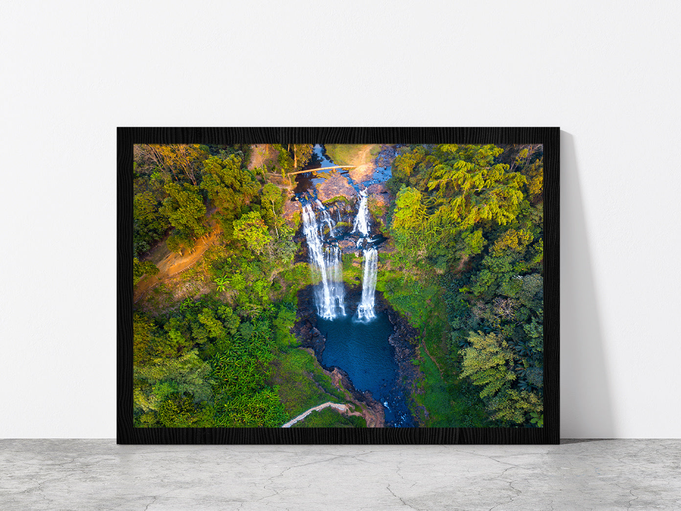 Gneuang Waterfall In Deep Forest Glass Framed Wall Art, Ready to Hang Quality Print
