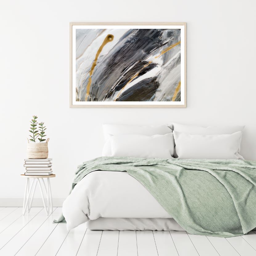 Gold Black & White Abstract Paint Home Decor Premium Quality Poster Print Choose Your Sizes