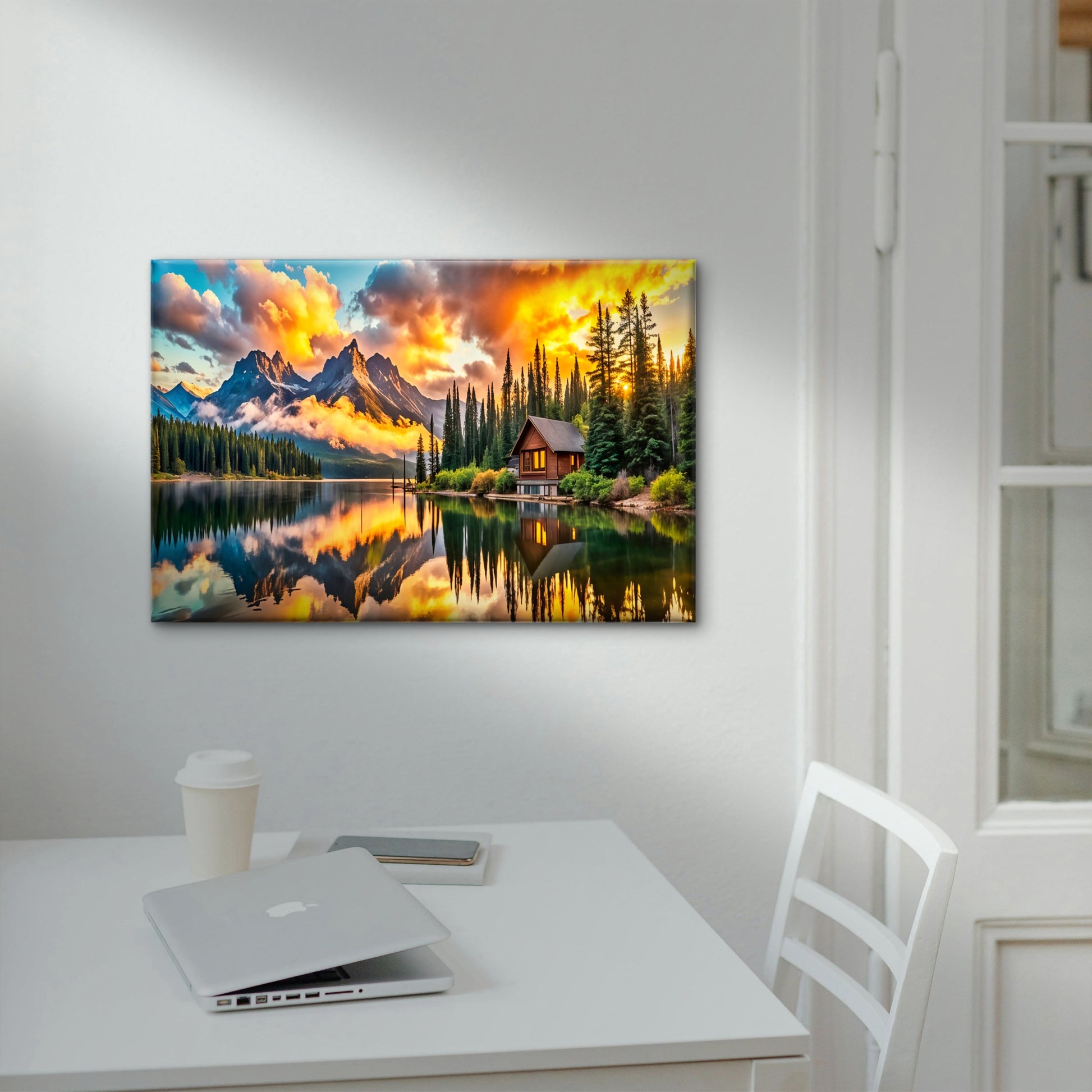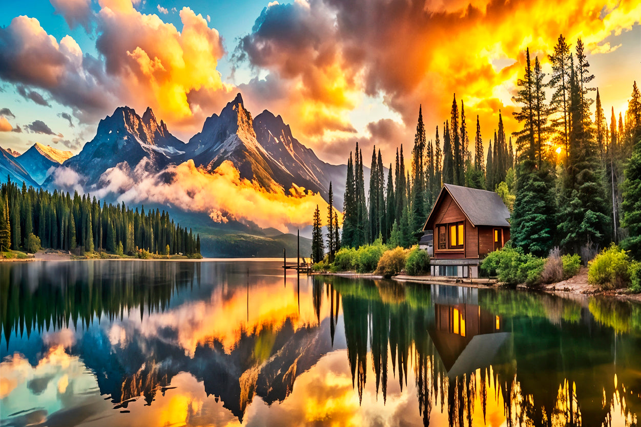 Golden Hour Sky Lake Wooden House Wall Art Decor 100% Australian Made
