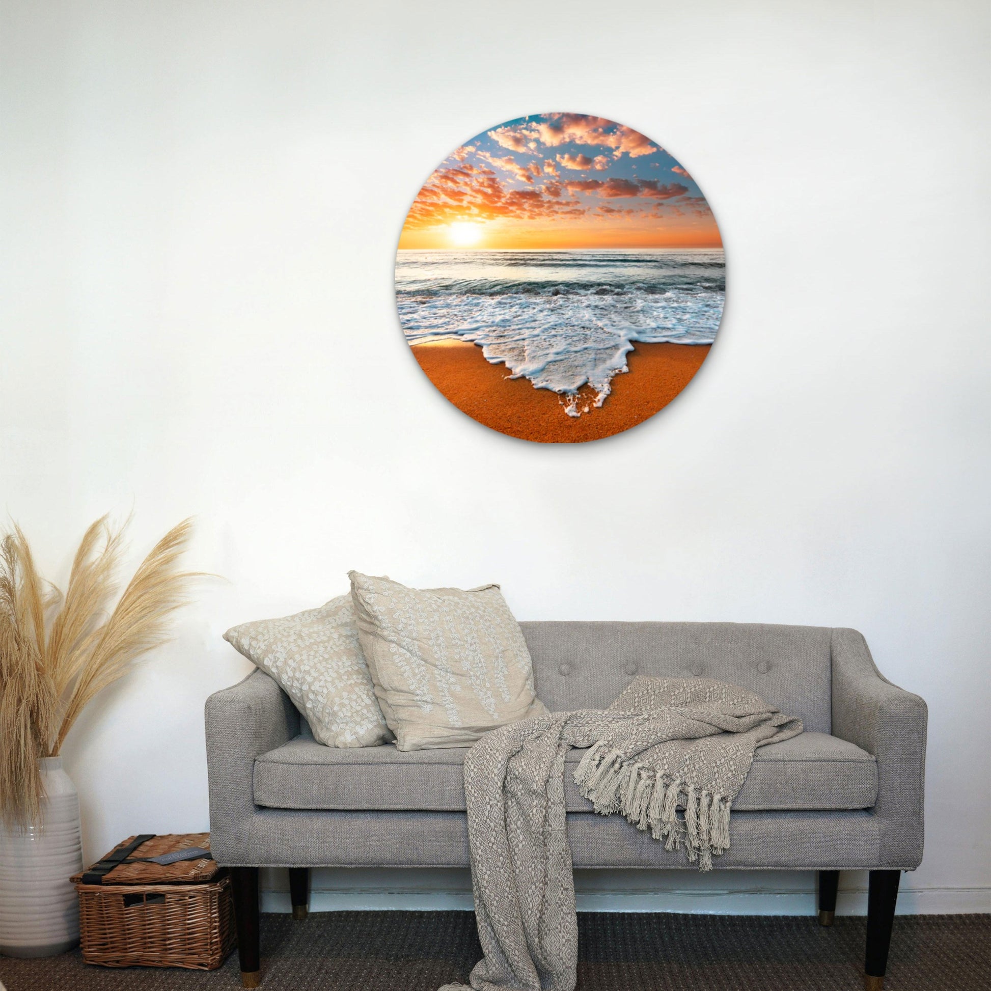 Golden Sunset Beach Waves Acrylic Glass Rounded Print Tempered Glass Wall Art 100% Made in Australia Ready to Hang