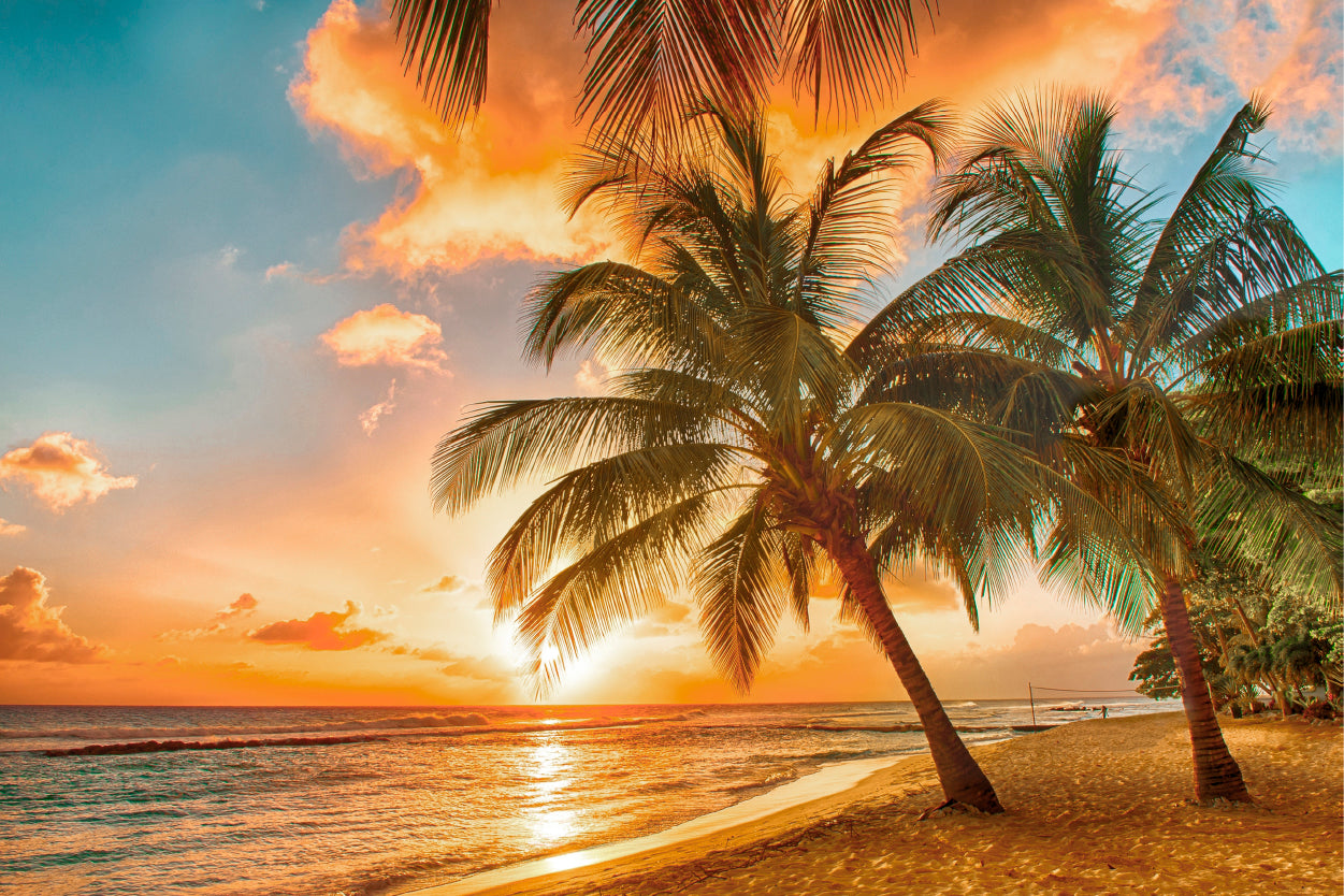 Golden Sunset Palm Beach Wall Art Decor 100% Australian Made